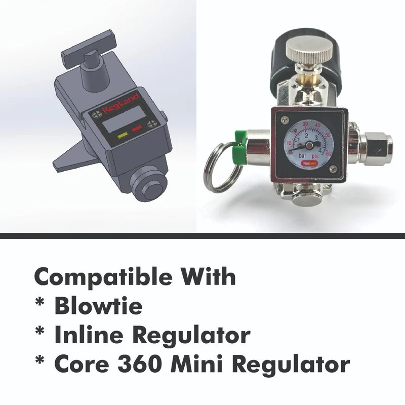 A KegLand desenvolveu o mini manômetro digital mais compacto do mundo com iluminação de fundo. Este design muito compacto mantém alta precisão e ainda atende ao desejável formato pequeno. Isso atende à necessidade crescente de sistemas de minibarris, minireguladores e outras soluções de distribuição de barris mais compactas.